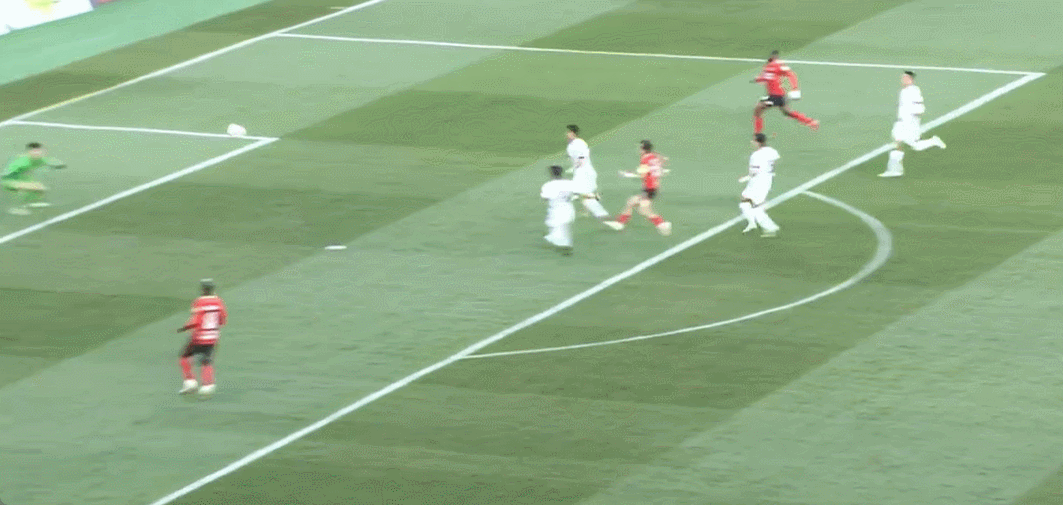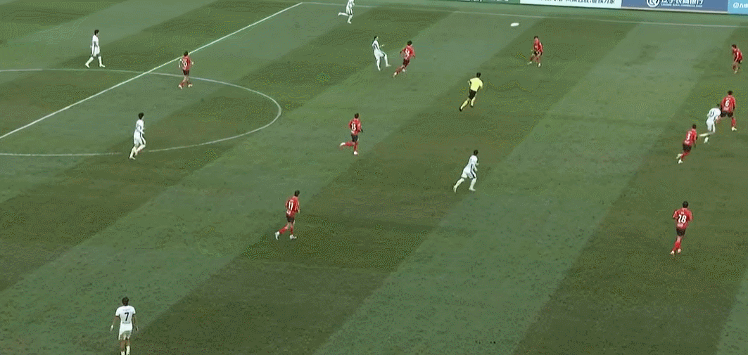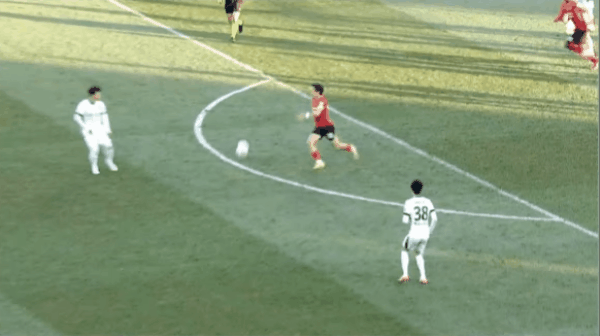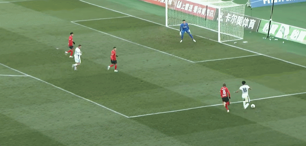 39’ อันหยินได้บอลไปหน้าประตูแล้วยิงด้วยเท้าขวาทันที บอลเลื่อนผ่านประตูแล้วบินออกนอกเส้นหลัง