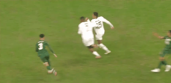42’ จาง หยุนหนิงรู้สึกอับอายที่คู่ต่อสู้เลี้ยงลูกอยู่ใต้เป้าของเขา และฟาบิโอก็ก้าวเข้ามาผลักคู่ต่อสู้เพื่อเขา เพื่อนร่วมทีม