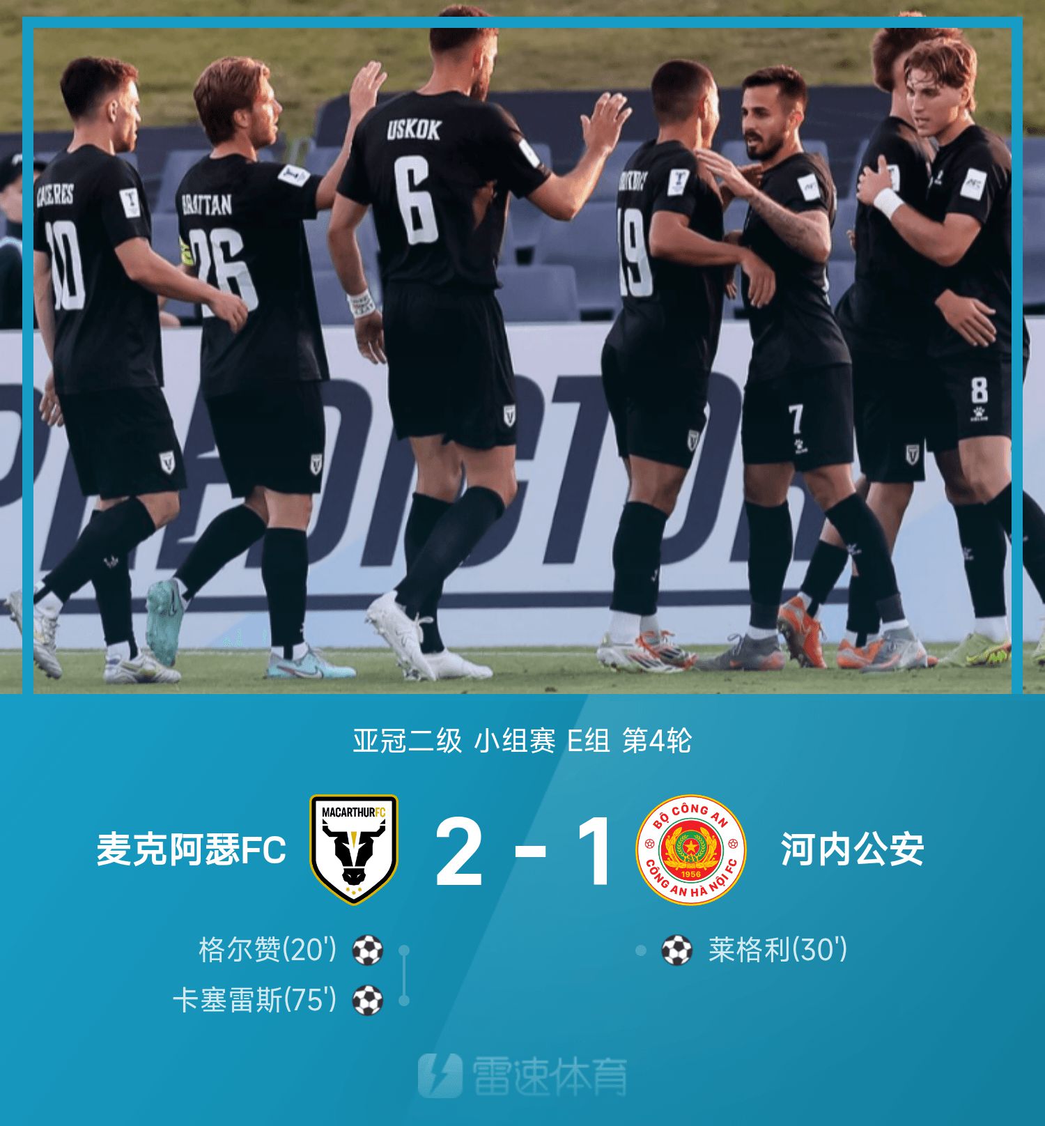 6686 Sports รายงานเมื่อวันที่ 6 พฤศจิกายนว่าในรอบที่ 4 ของกลุ่ม E ของ AFC Champions League ดิวิชั่น 2 25/26 ทีมเจ้าบ้านของ Macarthur FC เอาชนะ Hanoi Public Security 2-1 ในครึ่งแรกของเกม เกอร์ซานเปิดสกอร์ให้แม็คอาเธอร์ เลกลีตีเสมอ และทั้งสองฝ่ายเสมอกัน 1-1; ในครึ่งหลังของเกม กาเซเรส ยิงประตูชัย แมคอาเธอร์ขึ้นนำกลุ่มด้วย 7 แต้ม ขณะที่ฮานอยยังรั้งอันดับ 2 ของกลุ่มด้วย 5 แต้ม