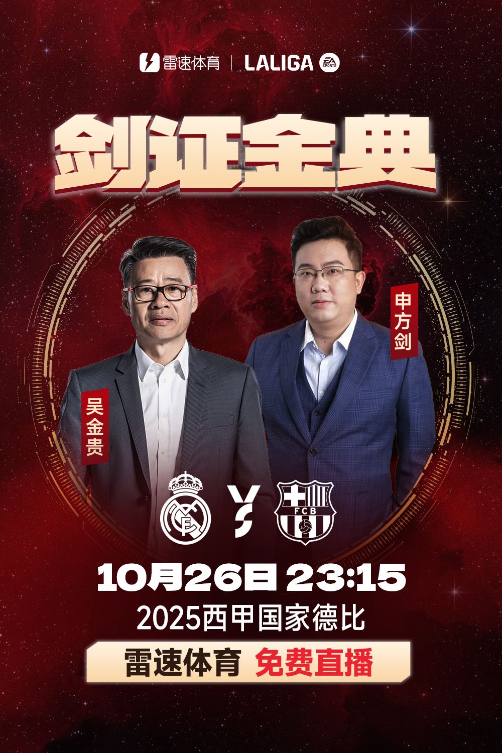 เวลา 23:15 น. ของวันที่ 26 ตุลาคม ตามเวลาปักกิ่ง ในรอบที่ 10 ของลาลีกา เรอัล มาดริด จะเผชิญหน้ากับบาร์เซโลนาที่สนามเหย้าของทีม นี่จะเป็นดาร์บี้ทีมชาติสเปนนัดแรกในฤดูกาลนี้ 6686 Sports จะถ่ายทอดสดการแข่งขันโฟกัสนี้แบบสดๆ โดยไม่เสียค่าใช้จ่าย และได้รับเกียรติให้เชิญแขกพิเศษสองคนมาแสดงความคิดเห็นเกี่ยวกับเกมนี้ ได้แก่ โค้ช Wu Jingui ที่มีชื่อเสียง และผู้บรรยายชื่อดัง Shen Fangjian