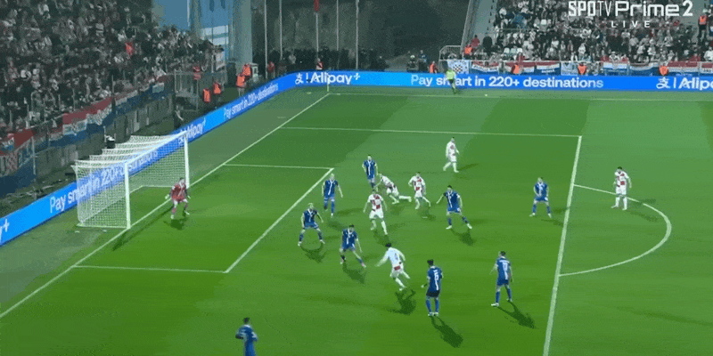 39' โมดริชลองยิงจากนอกเขตสามวินาที แต่บอลพลาดเตะมุมเล็กน้อย