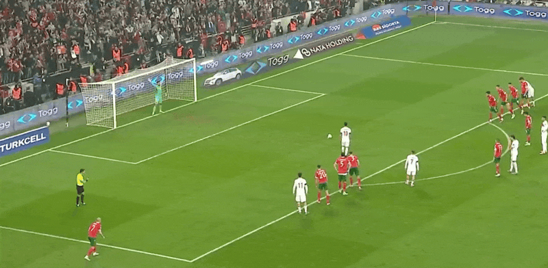 47' อัคตูโคกลูกระโดดสูงในโซนสามวินาทีแล้วโหม่งบอลเข้าหาประตู แต่โดนป้ายโฆษณา