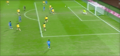 19' จงเหวิน หันกลับมาและเลี้ยงบอลในโซนสามวินาทีแล้ววอลเลย์ และบอลพลาดเป้า