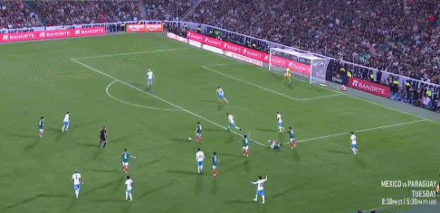 24’ ฆิเมเนซโหม่งบอลจากด้านหลัง และโลซาโนพลาดโอกาสทำประตูที่ว่างเปล่าด้วยการยิงครึ่งลูกอย่างช้าๆ