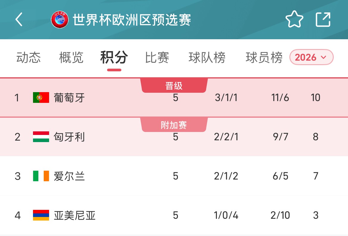 เวลา 22:00 น. ในตอนเย็นของวันที่ 16 พฤศจิกายน ตามเวลาปักกิ่ง ในรอบที่ 10 ของกลุ่ม F ของทัวร์นาเมนต์รอบคัดเลือกยุโรปของฟุตบอลโลกสหรัฐอเมริกา แคนาดา-เม็กซิโก ปี 2026 โปรตุเกสจะเผชิญหน้ากับอาร์เมเนียคู่ต่อสู้คนสุดท้ายในรอบแบ่งกลุ่มที่ สนามกีฬาปอร์โต้ ดรากอน
