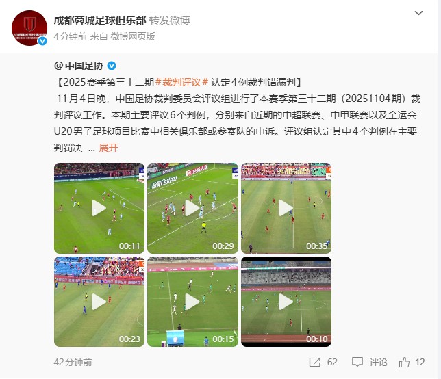 ต่อจากนั้น Weibo อย่างเป็นทางการของเฉิงตูเฉิงตูส่งต่อความคิดเห็นนี้ที่ออกโดยสมาคมฟุตบอลจีน