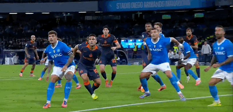 15’ เลาตาโรมีโอกาสที่ดีเยี่ยมในโซนสามวินาที และผู้รักษาประตูเนเปิลส์เซฟลูกยิงได้