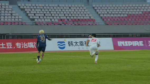 ในนาทีที่ 34 อวี้ เจ๋อหยวน ทะลุเส้นหลังและส่งบอลเป็นรูปสามเหลี่ยมคว่ำ จางต้าชี่ตามมายิงประตู! 1-1!