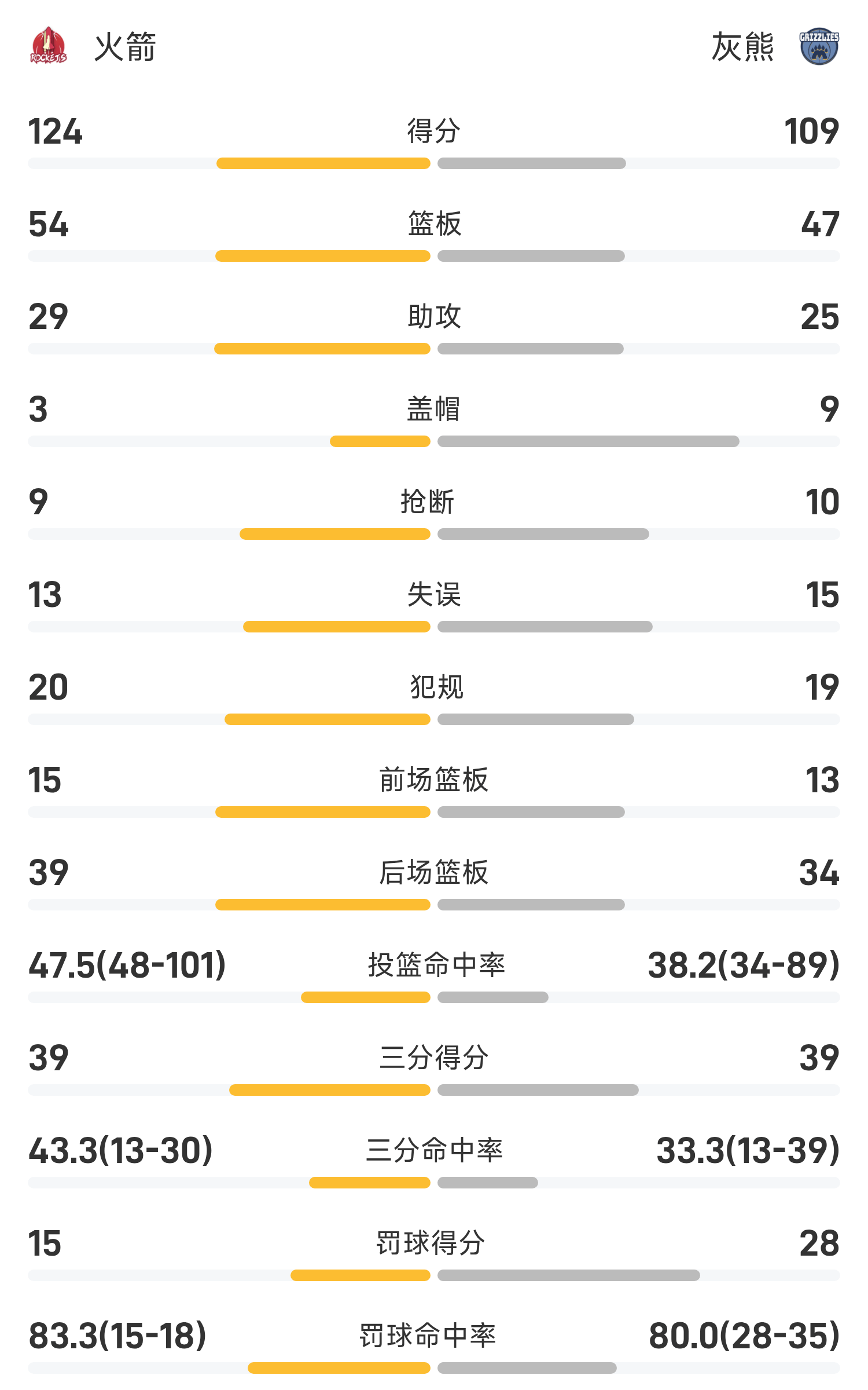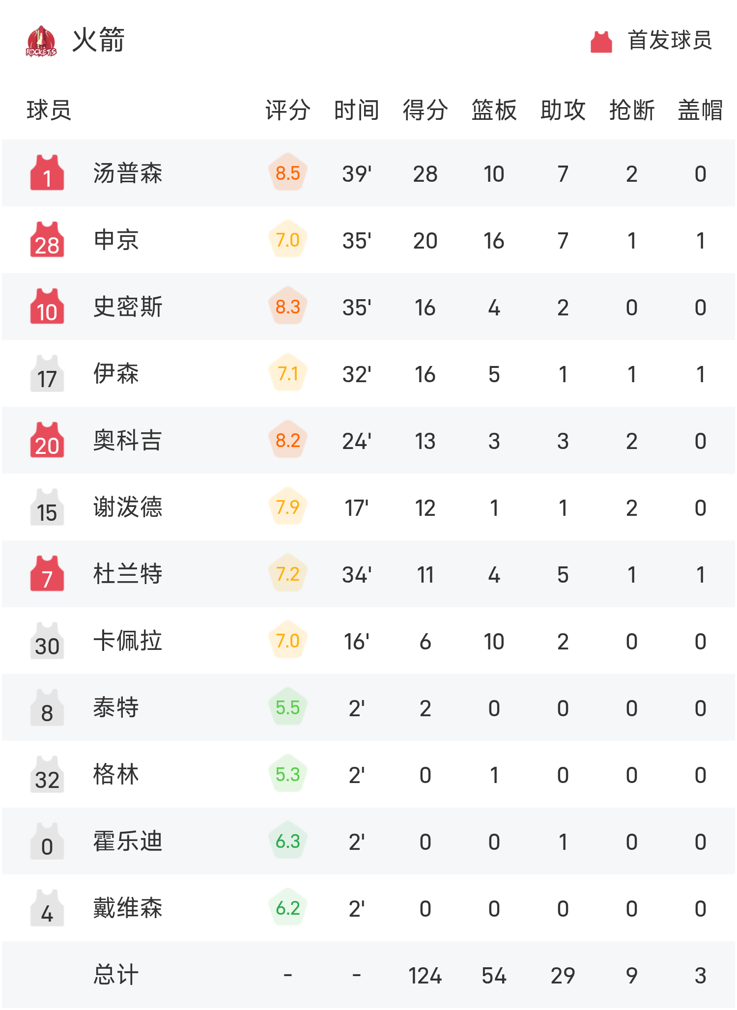 รายงานเกม NBA อาเมนมี 28 แต้ม 10 รีบาวด์ 7 แอสซิสต์ ร็อคเก็ตส์ เอาชนะ กริซลี่ส์ 124-109