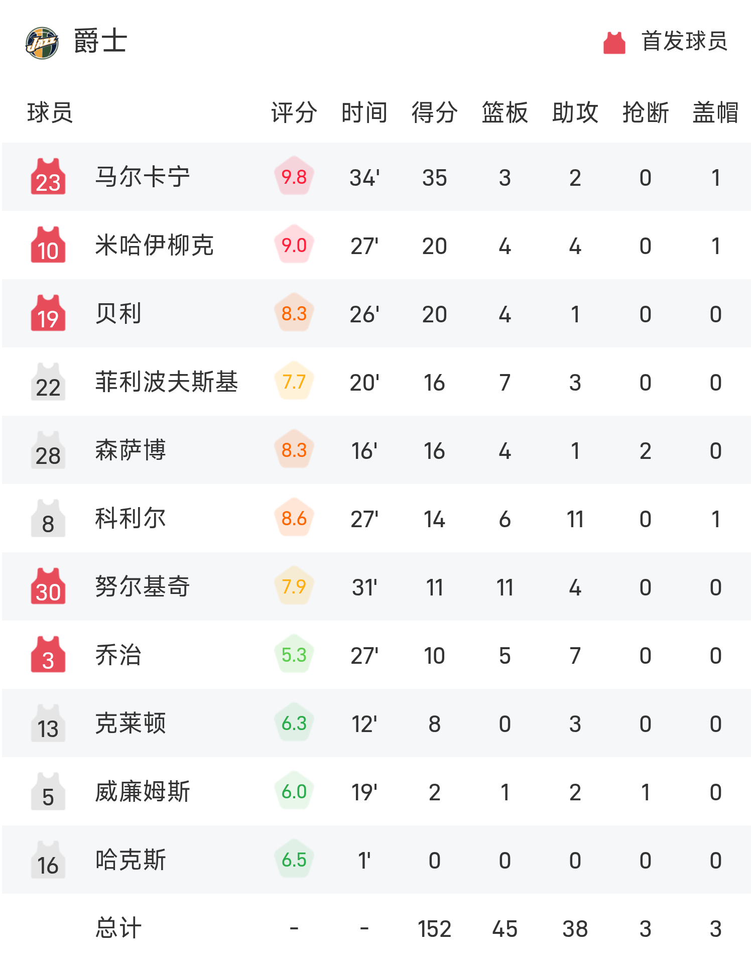 มาร์กคาเนนทำคะแนนสูงสุดในเกมได้ 35 แต้ม 3 รีบาวน์และ 2 แอสซิสต์ นำทีมแจ๊สคว้าชัยชนะ