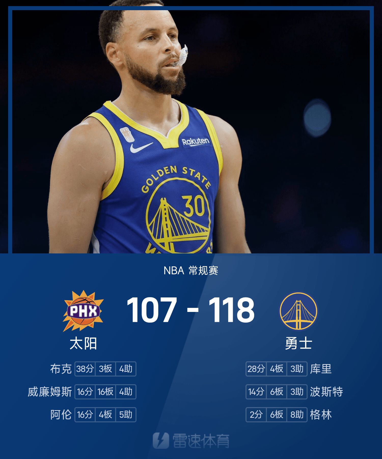 รายงานเกม NBA: Curry ทำได้ 28 แต้ม, Booker ทำได้ 38 แต้ม และ Warriors เอาชนะ Suns 118-107
