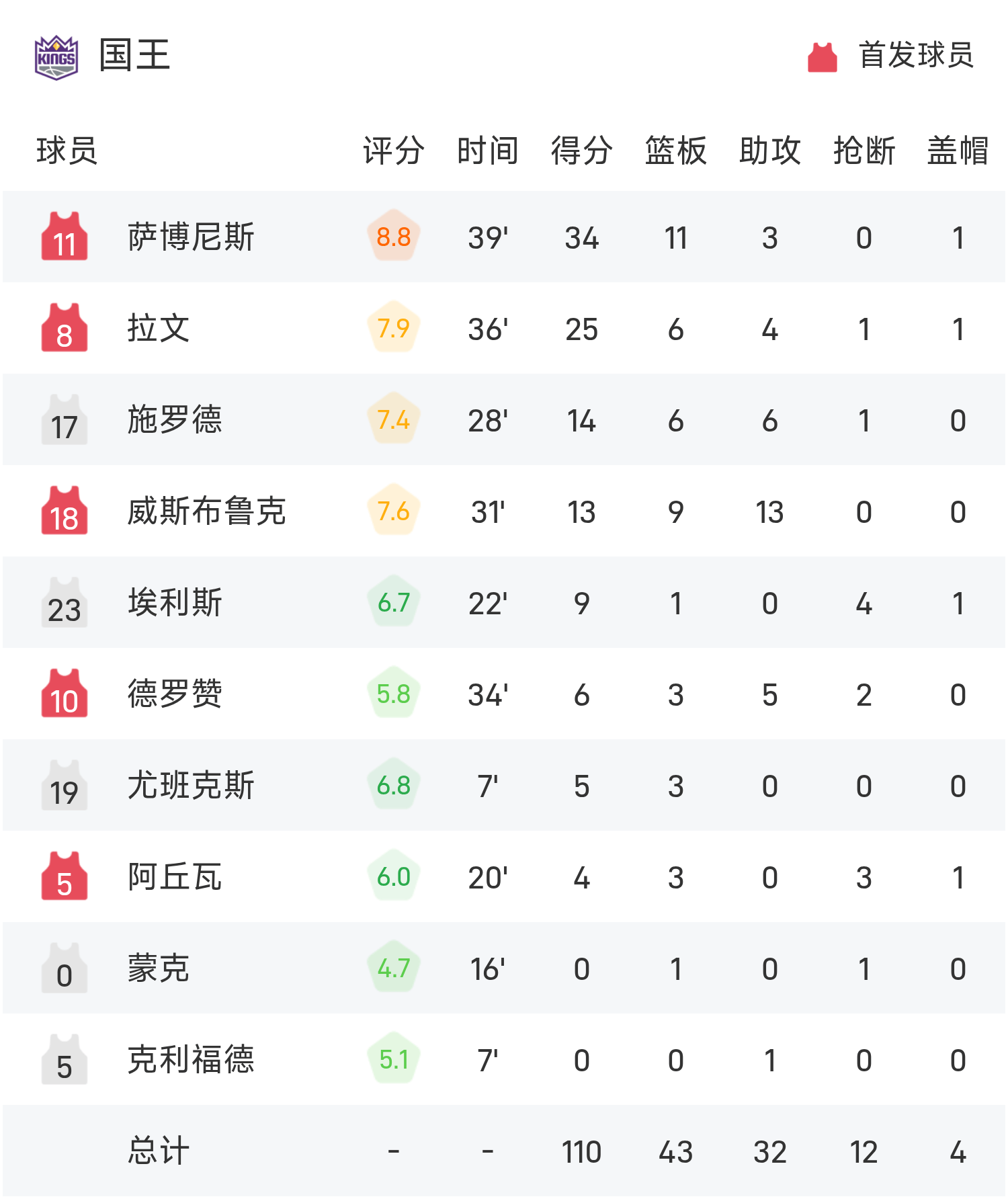 เอ็ดเวิร์ดทำ 30 แต้ม 4 รีบาวด์ และ 4 แอสซิสต์ นำทีมคว้าชัยชนะ ซาโบนิสทำคะแนนสูงสุดในเกม 34 แต้ม 11 รีบาวน์และ 3 แอสซิสต์