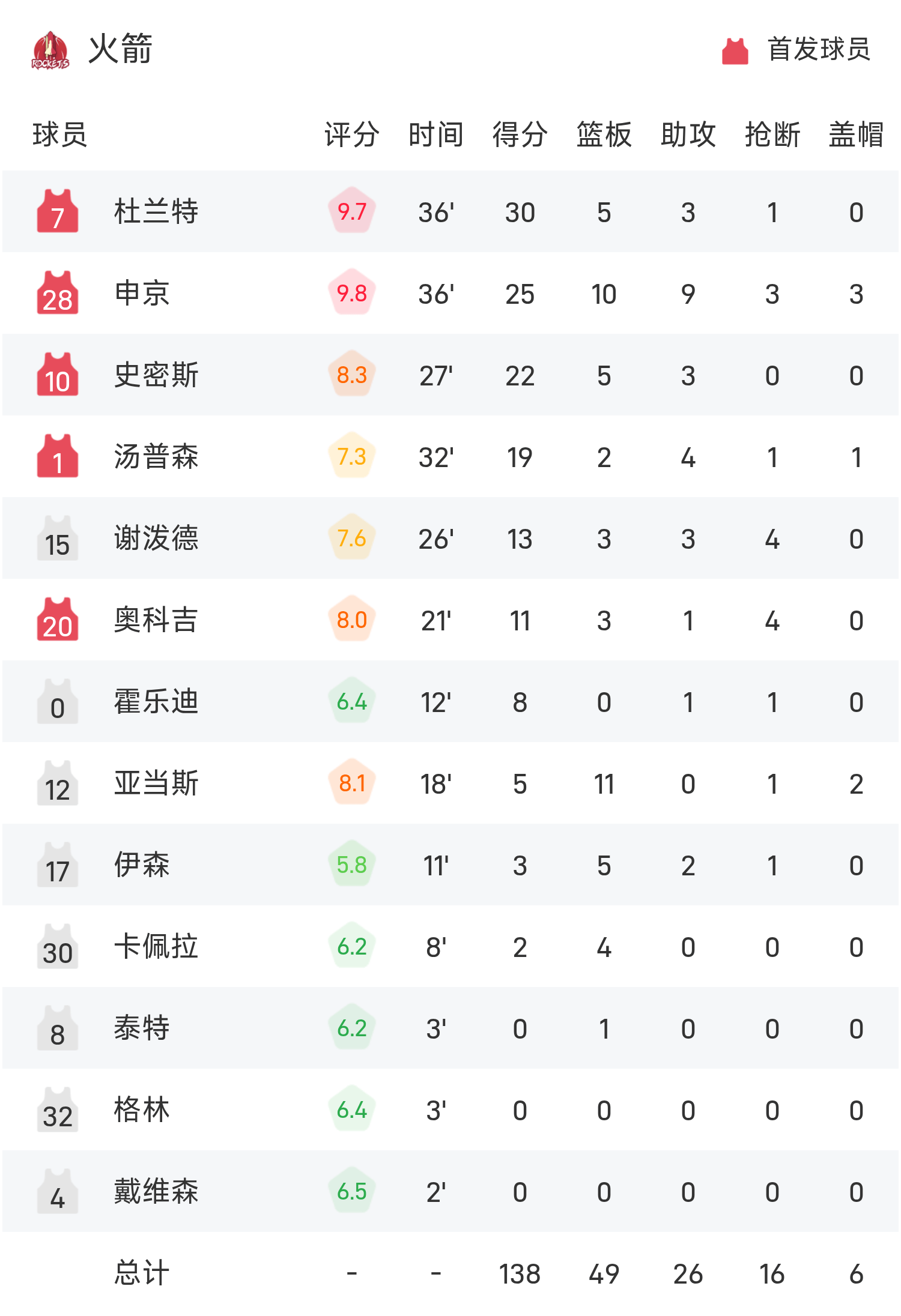 6686 กีฬา ข่าว 15 พฤศจิกายน ในการแข่งขันรอบแบ่งกลุ่ม NBA Cup ประจำฤดูกาล 25/26 ของ NBA ทีม Rockets เผชิญหน้ากับ Trail Blazers จบเกม ร็อคเก็ตส์ เอาชนะ เทรลเบลเซอร์ส 140-116 ดูแรนต์ทำคะแนนสูงสุดในเกม 30 แต้ม 5 รีบาวน์และ 3 แอสซิสต์ นำทีมร็อคเก็ตส์คว้าชัยชนะ