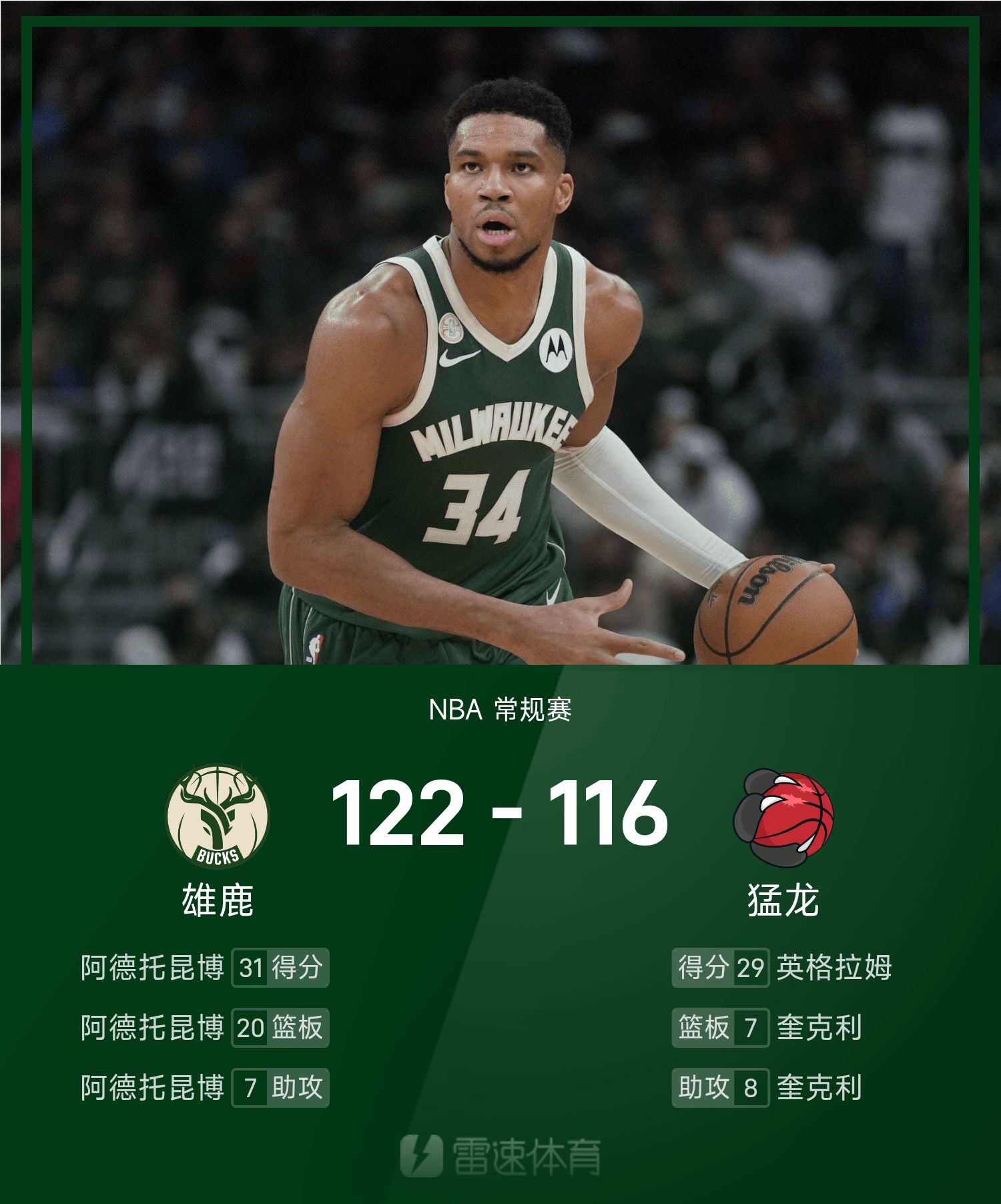 6686 กีฬา 25 ตุลาคม ในฤดูกาลปกติ 25/26 ของ NBA ทีม Raptors เล่นกับ Bucks จบเกม แร็พเตอร์ส แพ้ บัคส์ 116-122 Antetokounmpo ทำคะแนนสูงสุดในเกม 31 แต้ม 20 รีบาวน์และ 7 แอสซิสต์ นำ Bucks ไปสู่ชัยชนะ
