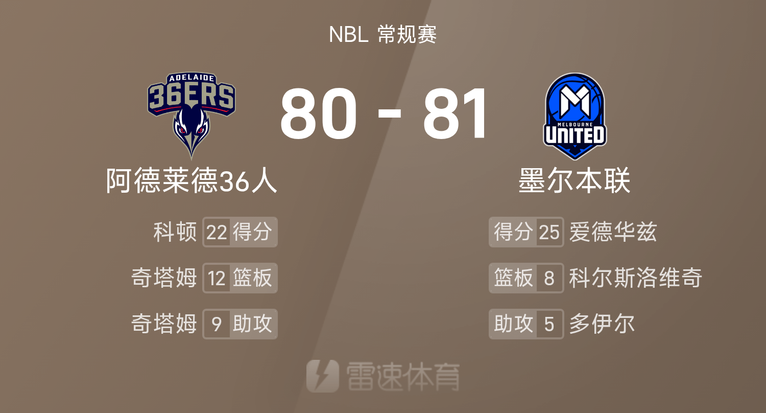 จบเกม เมลเบิร์น ยูไนเต็ด เอาชนะ แอดิเลด 36เซอร์ส 81-80