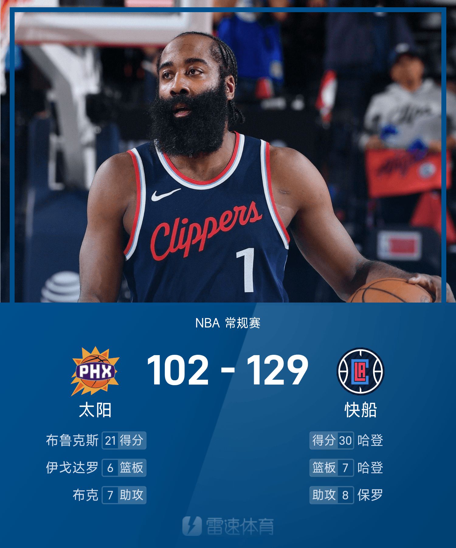 รายงาน NBA: ฮาร์เดนมี 30 แต้ม 7 รีบาวน์ 7 แอสซิสต์ คลิปเปอร์ส เอาชนะ ซันส์ 129-102