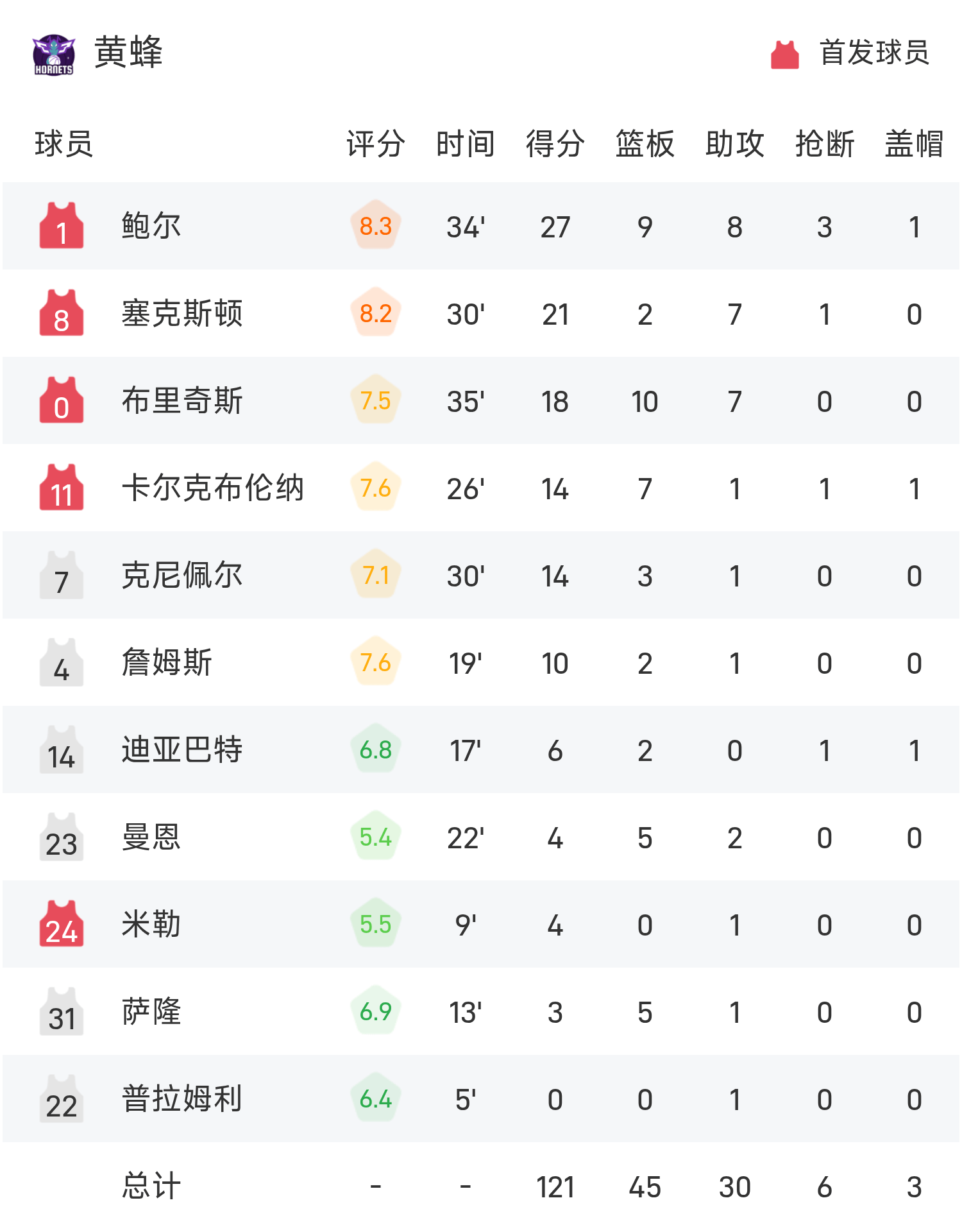 จบเกม 76ers เอาชนะ ฮอร์เน็ตส์ 125-121