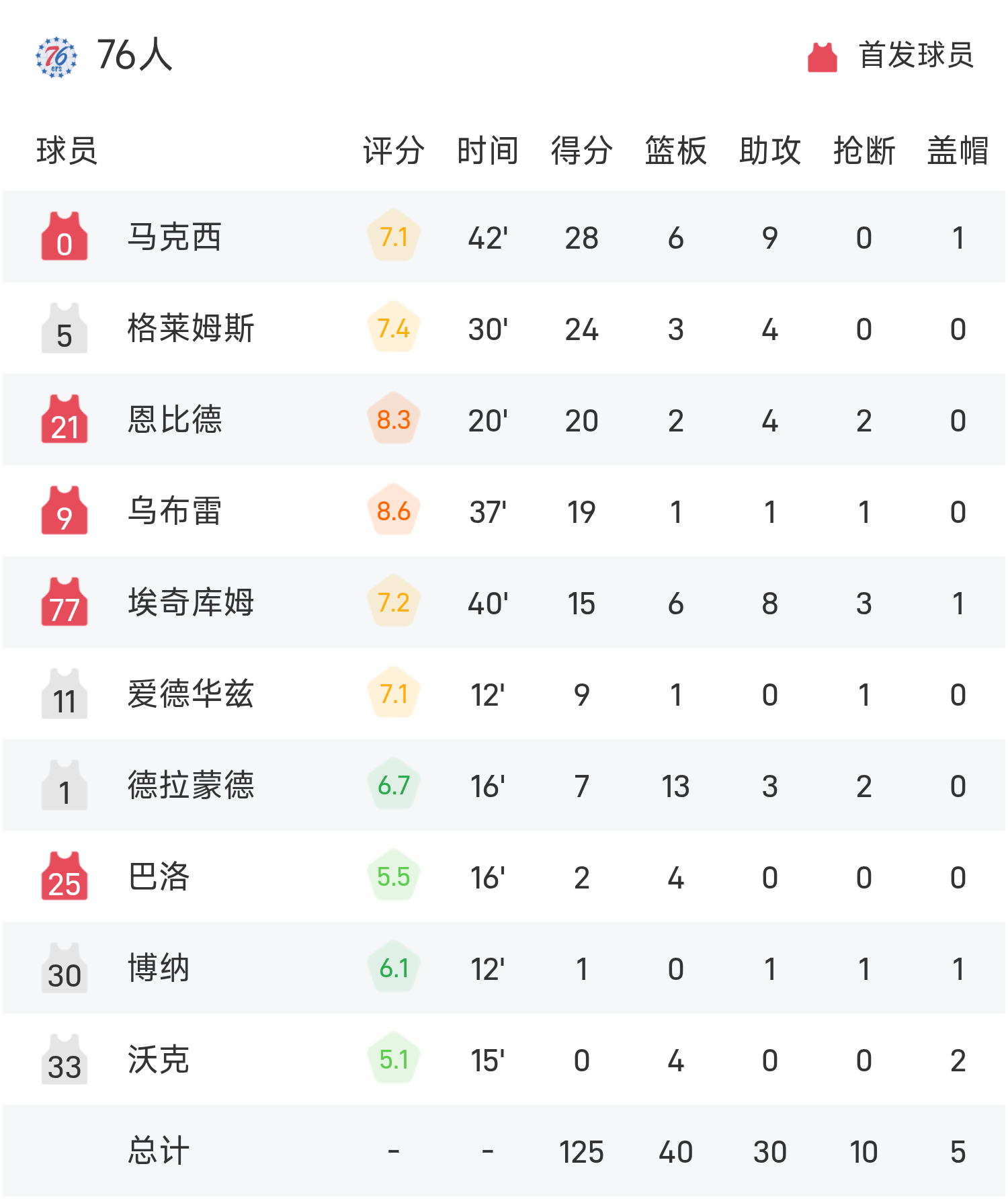 รายงานเกม NBA แม็กซี่มี 28 แต้ม 9 แอสซิสต์ 76ers เอาชนะ ฮอร์เน็ตส์ 125-121 อย่างหวุดหวิด