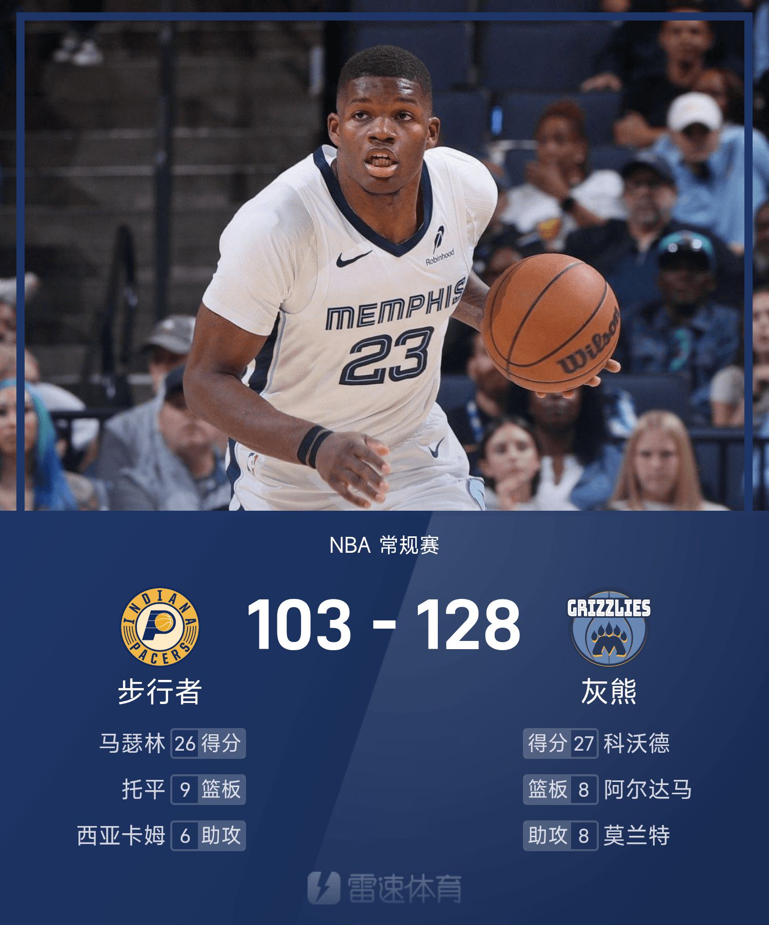 The Grizzlies เอาชนะ Pacers 128-103